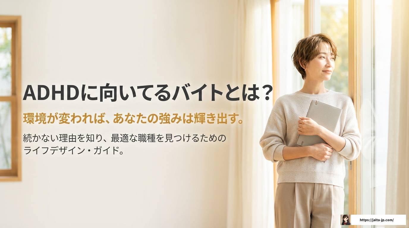 自閉症の結婚率は低い?幸せな家庭を築くためのヒントと対策 2026.04.08 自閉症 yama333 発達グレーとライフデザイン手帖 自閉症の人が絵がうまいのはなぜ?驚きの才能と視覚の秘密に迫る 2026.04.08 自閉症 yama333 発達グレーとライフデザイン手帖 ADHDに向いてるバイトとは?続かない理由とおすすめ職種 2026.04.08 ADHD yama333 発達グレーとライフデザイン手帖 「asdうざい」と感じる原因とカサンドラを防ぐ具体的な対処法 2026.04.08 ASD yama333 発達グレーとライフデザイン手帖 ADHD彼氏のライン放置に悩む女性へ!既読無視の理由と対策 2026.04.08 ADHD yama333 発達グレーとライフデザイン手帖 自閉症の遺伝や兄弟の結婚に悩むあなたへ!不安を解消する備えと知識 2026.04.03 自閉症 yama333 発達グレーとライフデザイン手帖 ADHDで大学生活を乗り切る!配慮や支援の活用法と就活対策 2026.04.03 ADHD yama333 発達グレーとライフデザイン手帖 吃音がある方のバイト選び!おすすめ職種や面接での伝え方を解説 2026.04.03 吃音 yama333 発達グレーとライフデザイン手帖 自閉症スペクトラムと自閉症の違いとは?知恵袋の疑問を解説 2026.04.03 自閉症 yama333 発達グレーとライフデザイン手帖 asdについて知恵袋で検索するあなたへ!悩みの解決策とヒント 2026.04.03 ASD yama333 発達グレーとライフデザイン手帖 もっと見る