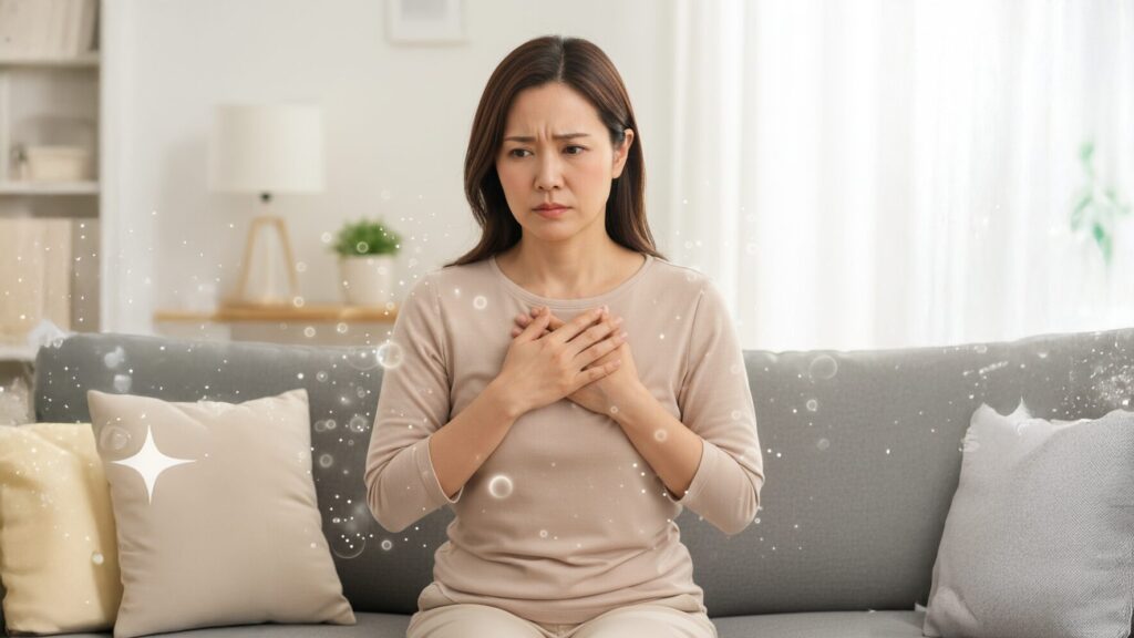 - 自律神経の乱れ:ホルモンバランスの急激な変化は自律神経を乱しやすくします。その結果として起こる動悸、息切れ、めまい、異常な発汗(ホットフラッシュ)などが、落ち着いて声を出すことの妨げになることがあります。