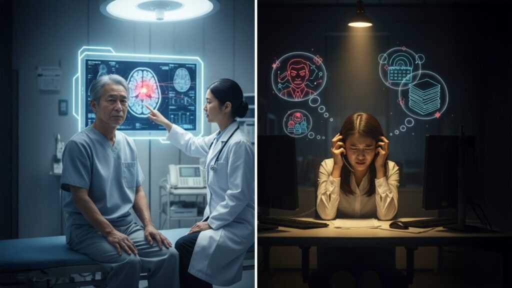 現時点の医学では、更年期が吃音を発症させるという直接的な因果関係は明確に証明されていません。しかし、臨床の現場では、更年期の不調がきっかけで吃音の悩みが深刻化するケースが見られます。