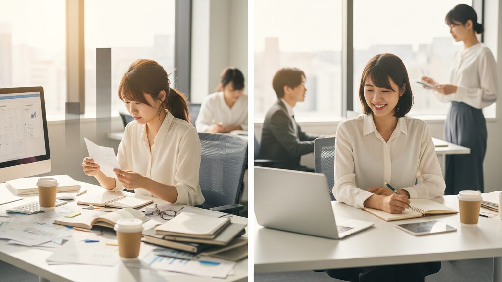 集中力を持続させることが極端に困難で、外部からのわずかな刺激(物音など)で簡単に注意が逸れてしまいます。その結果、単純なケアレスミスを繰り返したり、人の話を最後まで聞けなかったりします。また、物を頻繁になくす、約束や締め切りを忘れる、部屋やデスクの整理整頓が極端に苦手といった傾向も顕著です。