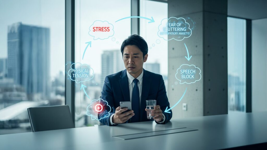 • 「どもるかも」という予期不安が悪循環を生む