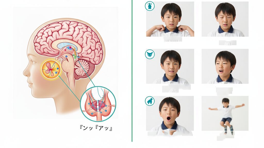 原因は、かつては親の育て方やストレスが原因と誤解されていた時代もありましたが、現在では「脳の体質」、すなわち神経発達の問題として説明されています。脳内の「大脳基底核」と呼ばれる運動の制御に関わる部分の機能障害、特に神経伝達物質である「ドーパミン」の受容体が過敏に反応しすぎることが関与していると考えられています。