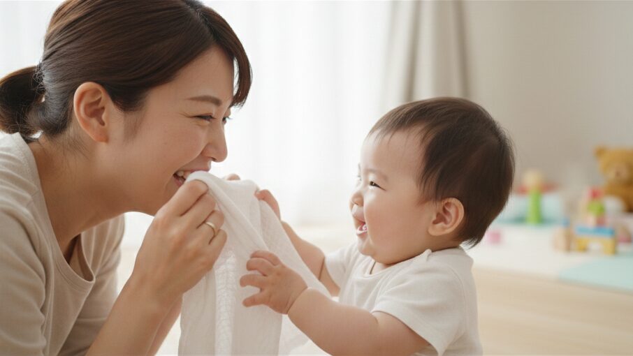 昔ながらの「いないいないばあ」は、共同注意を育む最高の遊びです。