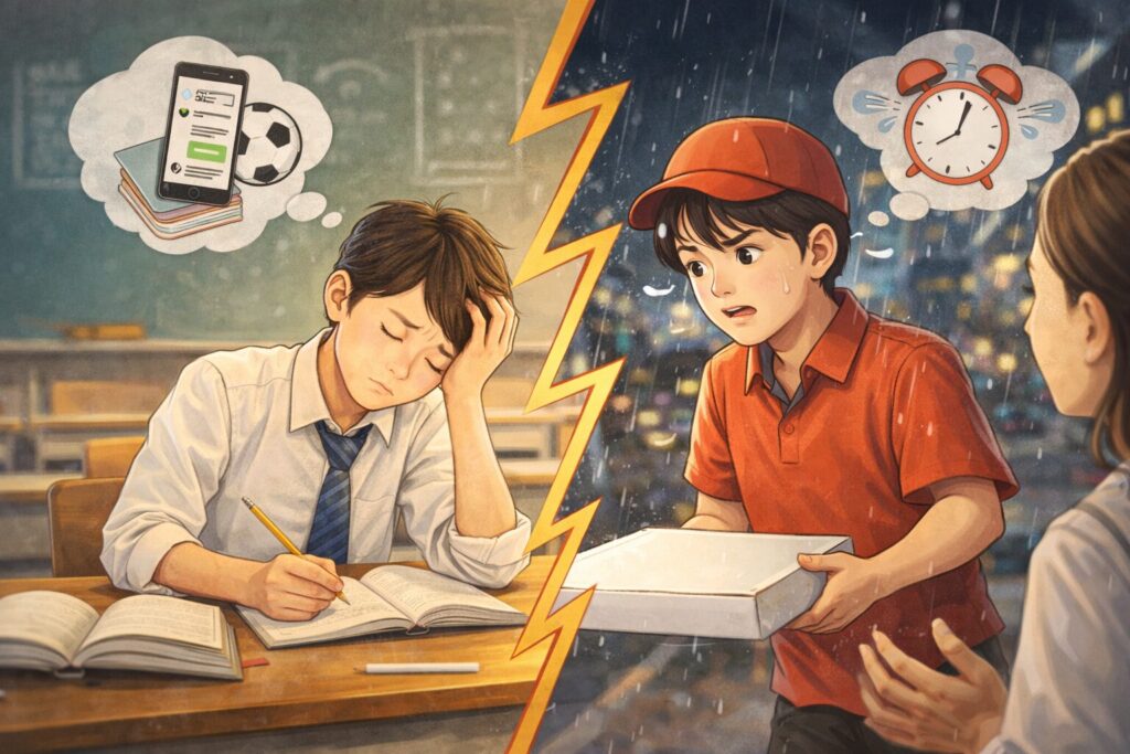 高校生でのバイトデビューは、社会に出る第一歩として素晴らしい挑戦です。でも、ADHDを抱える高校生にとって、学校・部活・勉強に加えて「バイト」という新しい刺激が入ってくるのは、想像以上に脳を疲れさせます。