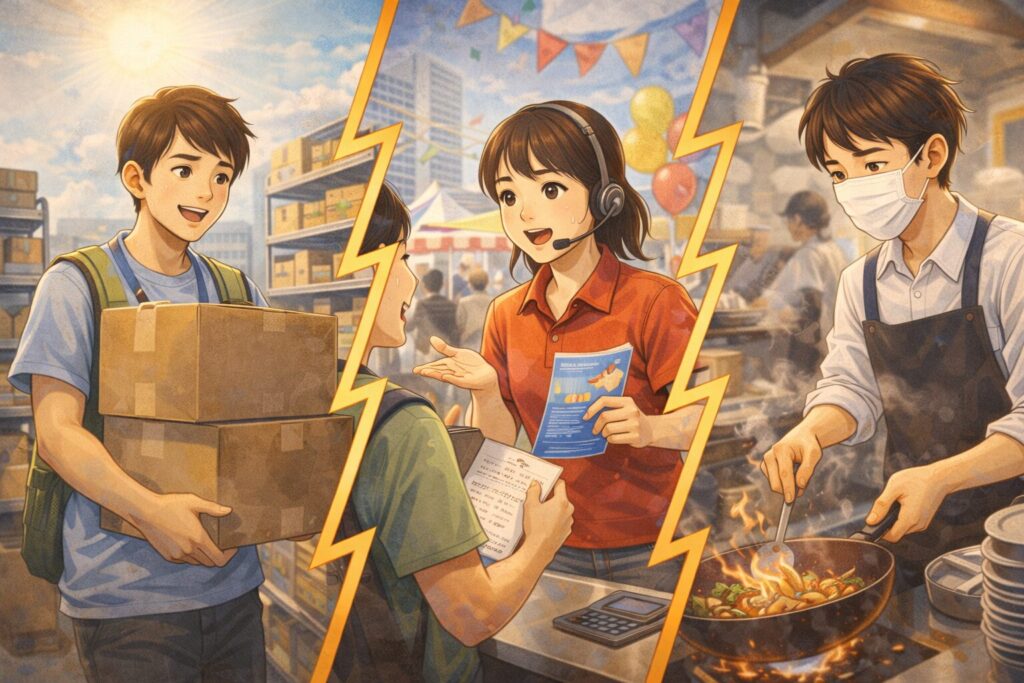 多動傾向がある方には、じっとしている仕事よりも、身体を動かす仕事が絶対におすすめです。倉庫内でのピッキング、引っ越し作業、あるいは大型店舗での品出しなどは、動き回りながら作業するため、落ち着きのなさが目立たないどころか「テキパキ動ける人」として重宝されます。