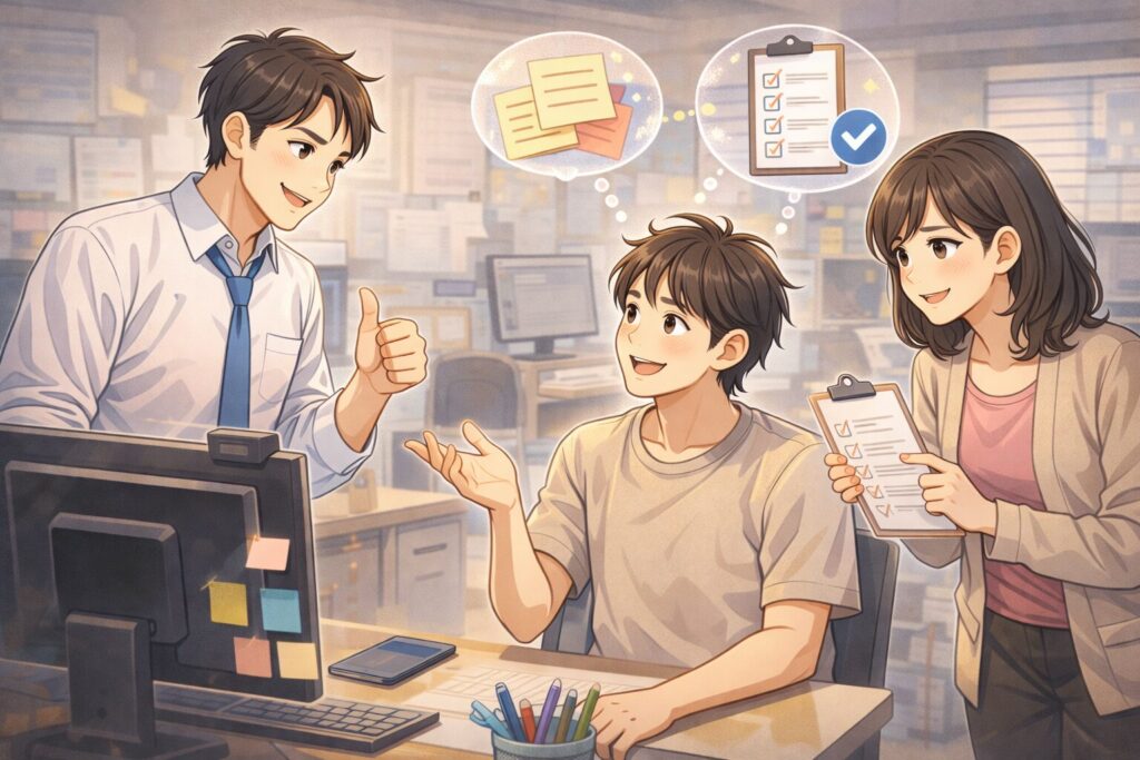 3. 「チェックリストを共有する」「スマホのリマインダーをセットする」など、物理的な仕組みを提案する。